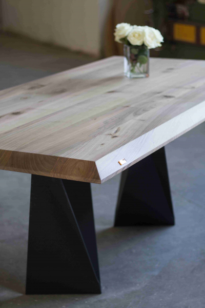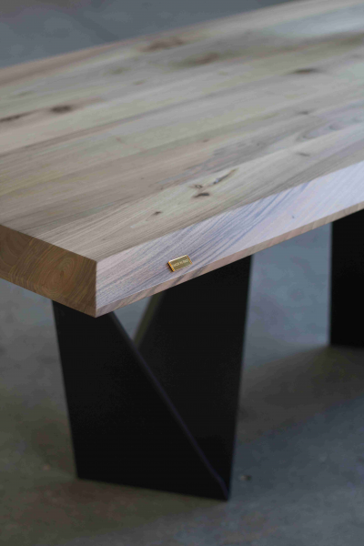 Piano in Noce massello naturale, base in ferro nero raggrinzato