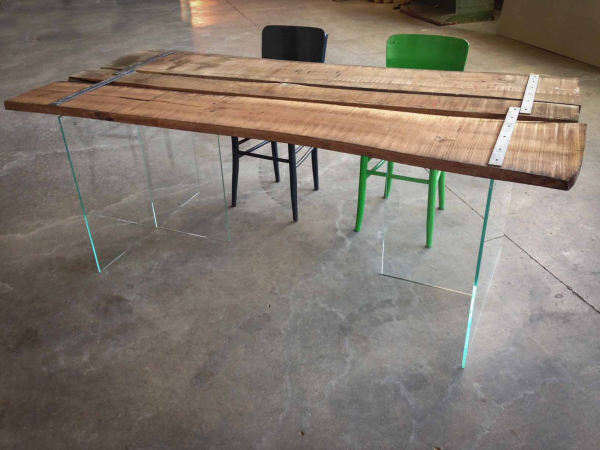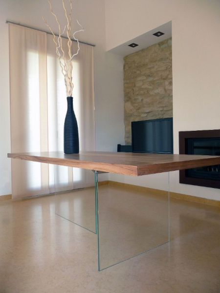 Tavolo Fisso in legno con supporti in Vetro temperato
