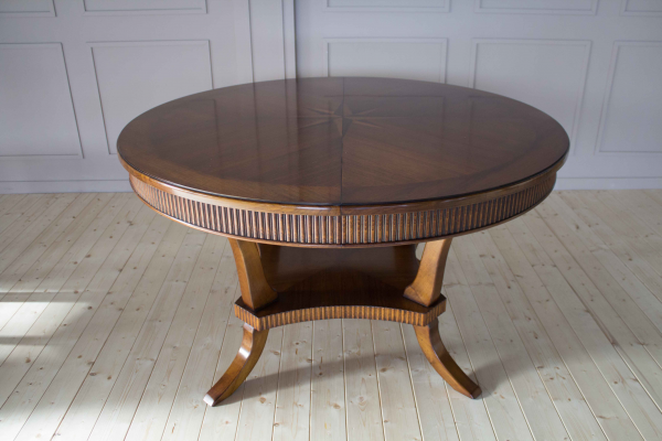Top Impiallacciato noce con intarsio Rosa dei Venti, struttura in faggio. Finitura a tampone a mano tonalità Noce Rosato