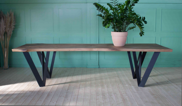 Tavolo Rettangolare fisso in Noce massello con 4 basi a sostegno in ferro raggrinzito