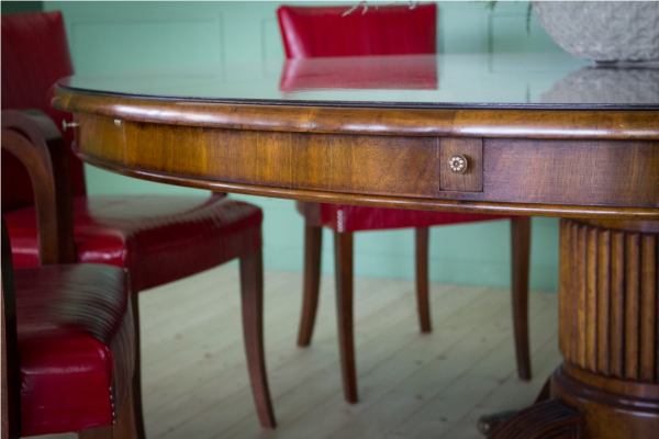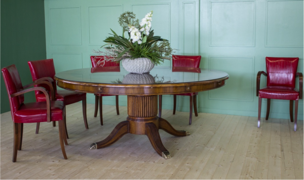 Tavolo Rotondo Classico allungabile con forma ovale, base centrale con dettagli in ottone